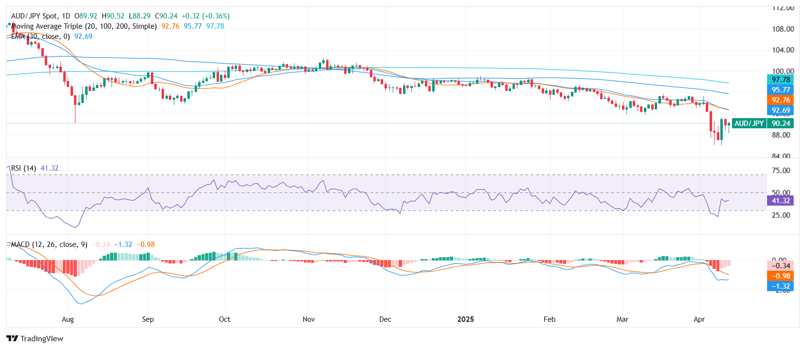 澳元/日元价格分析:在看跌背景持续下,涨幅受限于关键阻力附近