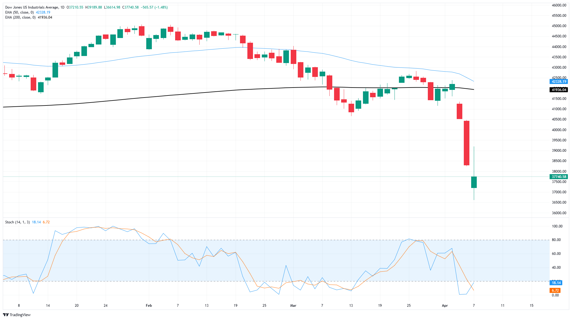 道琼斯工业平均指数因新一轮关税升级而剧烈波动