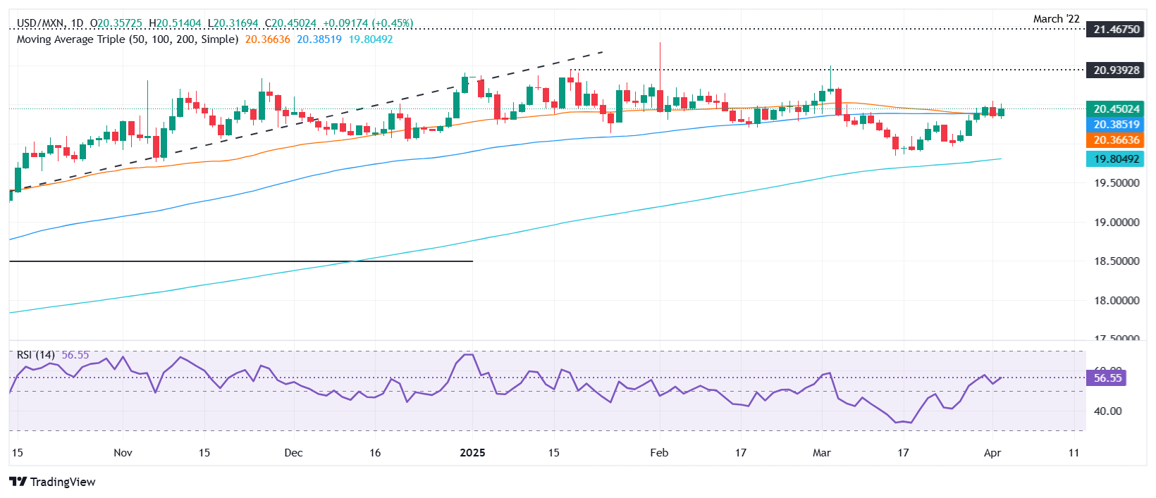 墨西哥比索(MXN)在对抗美元(USD)时仍处于防守状态,交易损失超过0.50%,交易者在等待美国总统唐纳德-特朗普(Donald Trump)今天晚些时候的解放日公告。