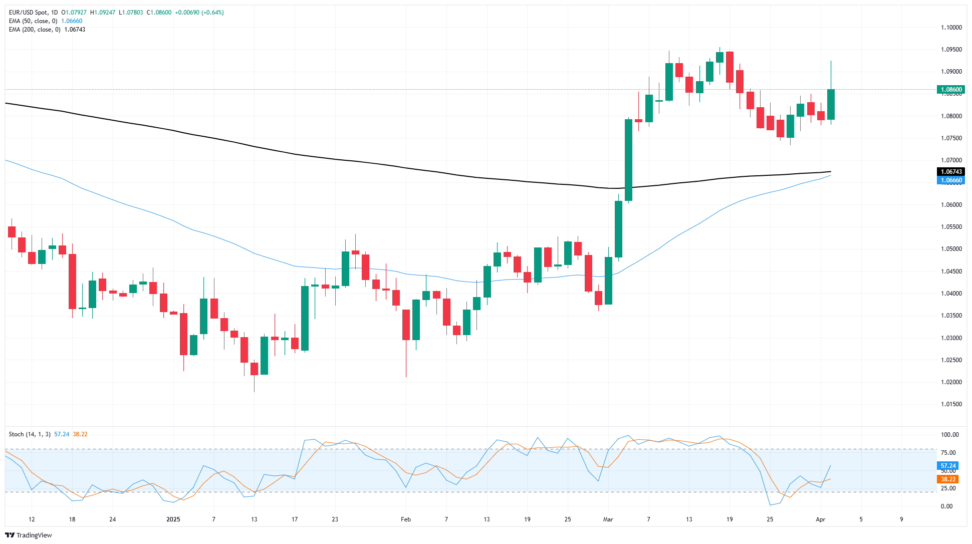 周三,欧元/美元货币对在特朗普政府宣布的关税低于许多投资者预期后出现看涨激增,考虑到唐纳德·特朗普总统在过去72天内的关税威胁。