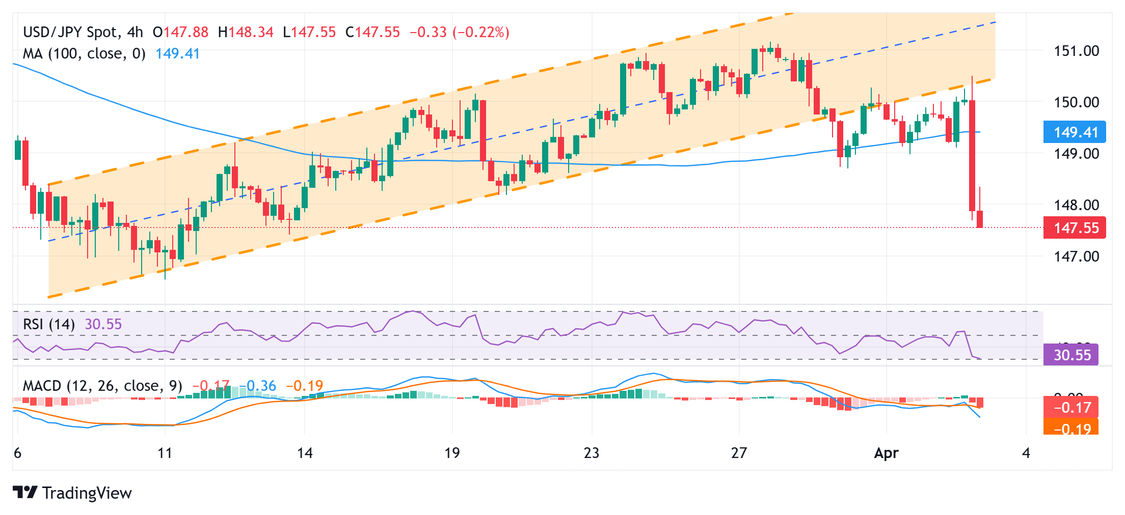 在周四的亚洲交易时段,因美国总统唐纳德·特朗普实施了大规模贸易关税,日元(JPY)对美元跳升至三周高点