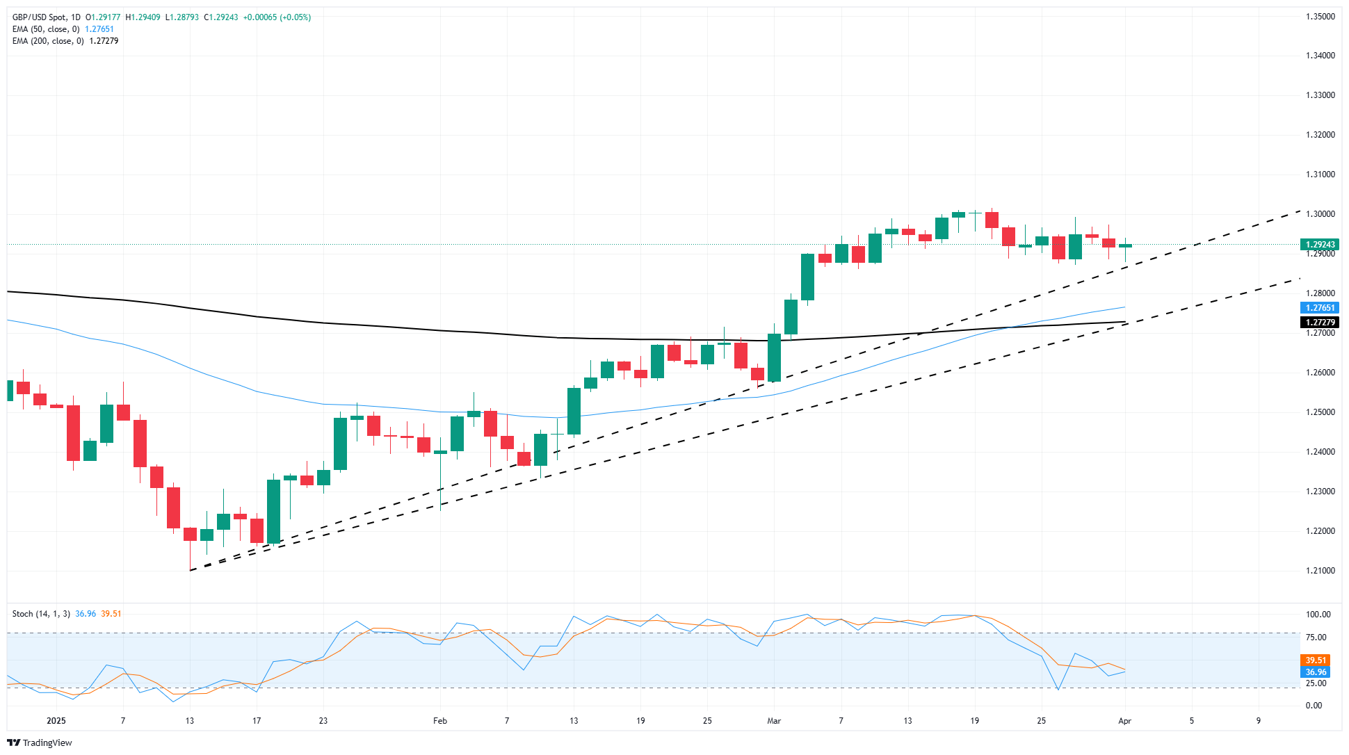 英镑/美元在美国4月2日解放日临近之际走弱,届时预计总统唐纳德·特朗普将宣布额外的关税,以补充自3月2日以来已实施的关税。