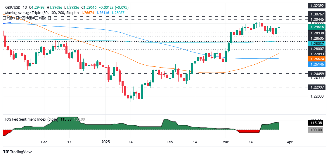 英镑兑美元保持坚挺,徘徊在1.2950附近,几乎没有变化,交易者正在消化美国最新的通胀报告,同时对特朗普对汽车征收关税后潜在贸易战升级的担忧仍然存在。