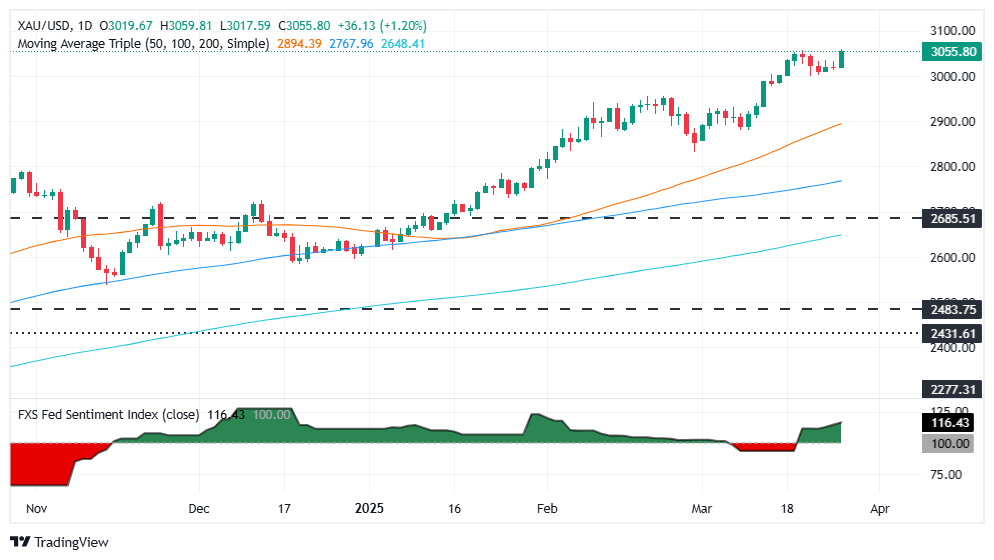 周四,黄金价格的上升趋势持续,黄金在美国总统唐纳德·特朗普实施汽车关税的贸易政策不确定性中创下3059美元的新纪录,进一步升级了贸易战。