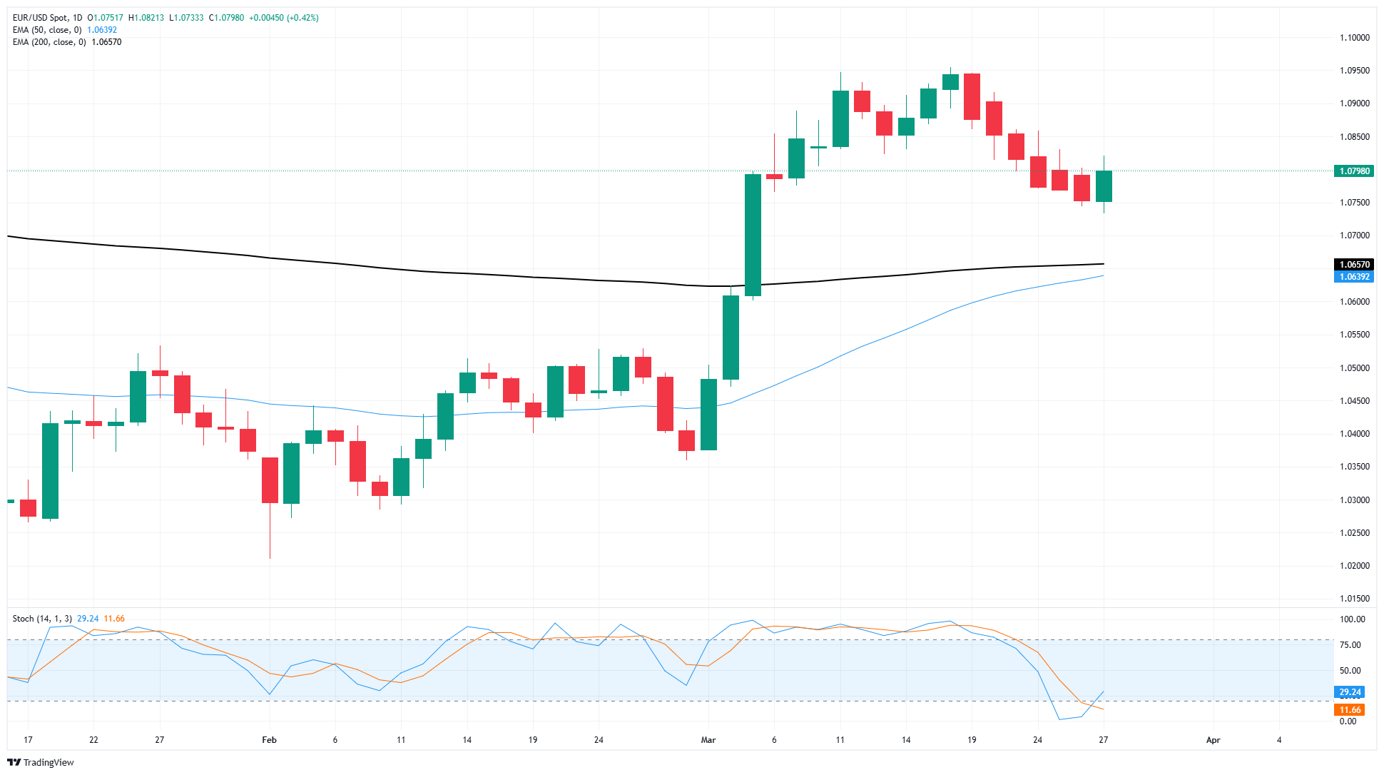 欧元/美元在周四喘息,上涨了0.4%,结束了连续六天的下跌趋势,此期间欧元兑美元从高点到低点下跌了2%。
