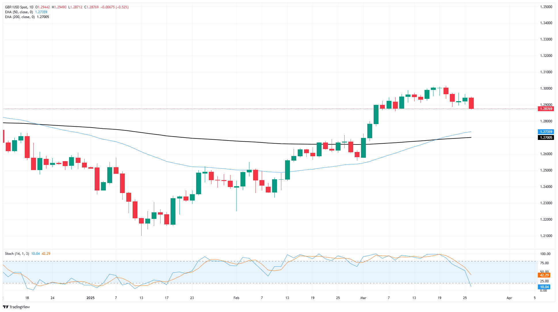 英镑/美元周三大幅下跌,跌幅达到六十分之一,重新跌回 1.2900 美元关口下方,市场情绪因美国总统唐纳德·特朗普的新一轮关税威胁而受到冲击。