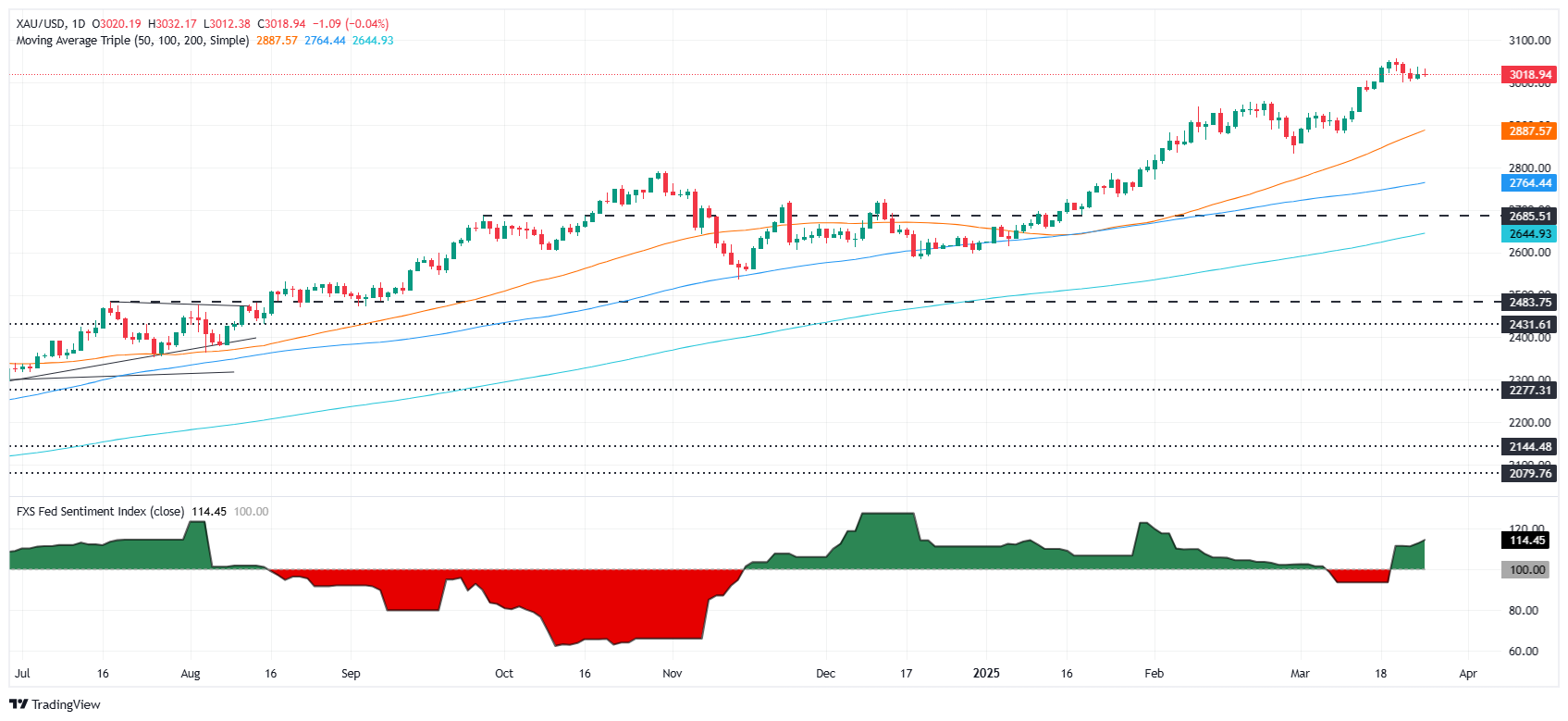 黄金在特朗普关税头条消息后稳固在3000美元以上