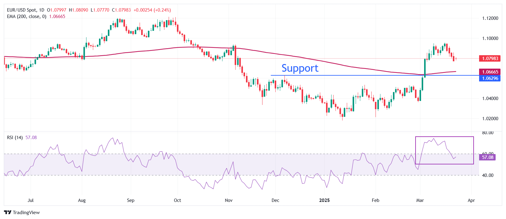 欧元/美元在1.0780附近找到支撑,并在周二北美交易时段上涨至接近1.0825。