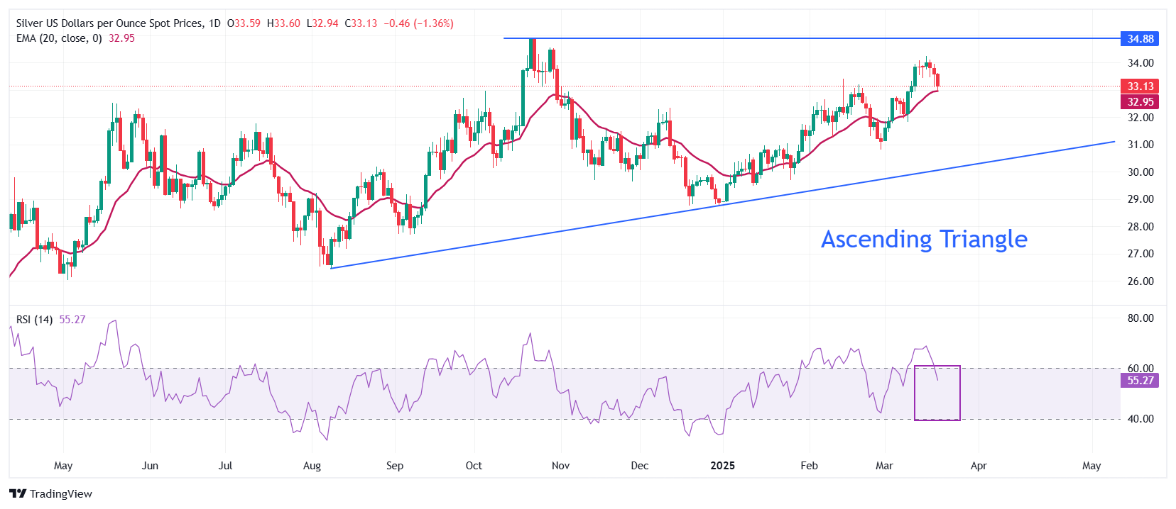 白银价格预测:白银/美元刷新周低点至33美元附近,因美联储不急于降息