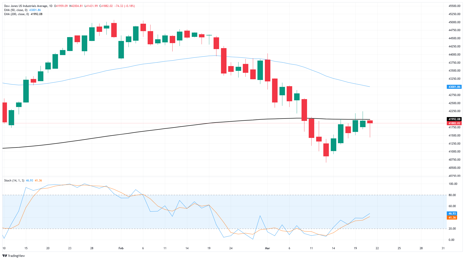 道琼斯工业平均指数(DJIA)在周五出现了波动性上升,但最终收于接近42000的水平,投资者正在努力决定下一步的方向