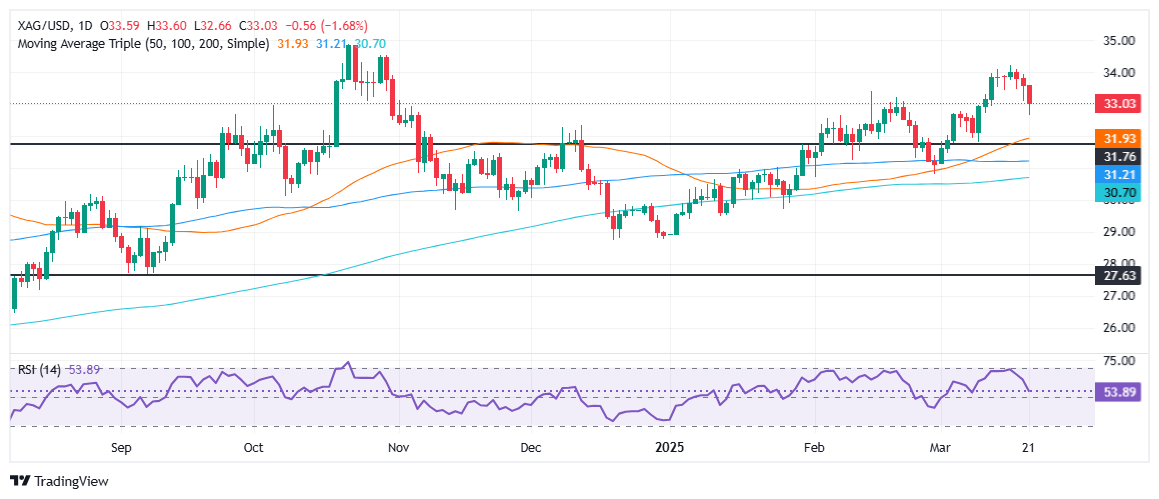 白银价格预测:白银/美元暴跌至33.00美元,创下自2月份以来最大单日跌幅