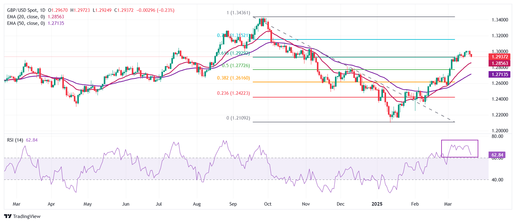 英镑(GBP)在周五北美交易时段延续修正,接近 1.2920 对美元(USD)