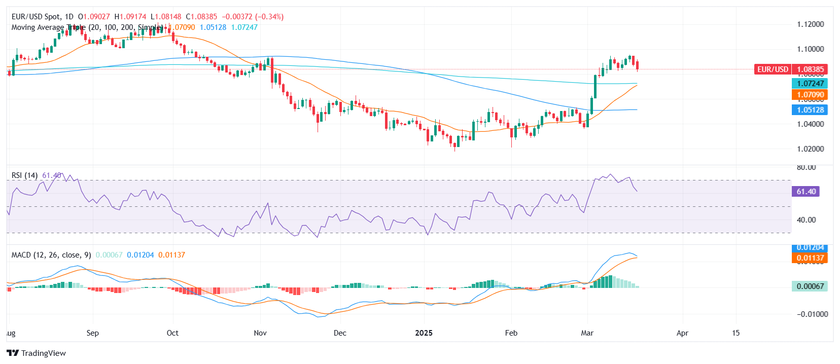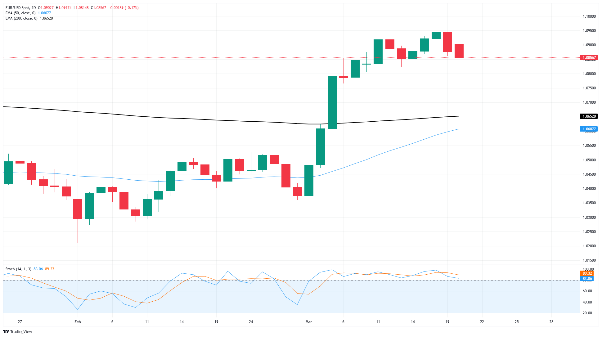 欧元/美元在周四欧洲时段后走低,跌向1.0830区域,看跌压力加剧