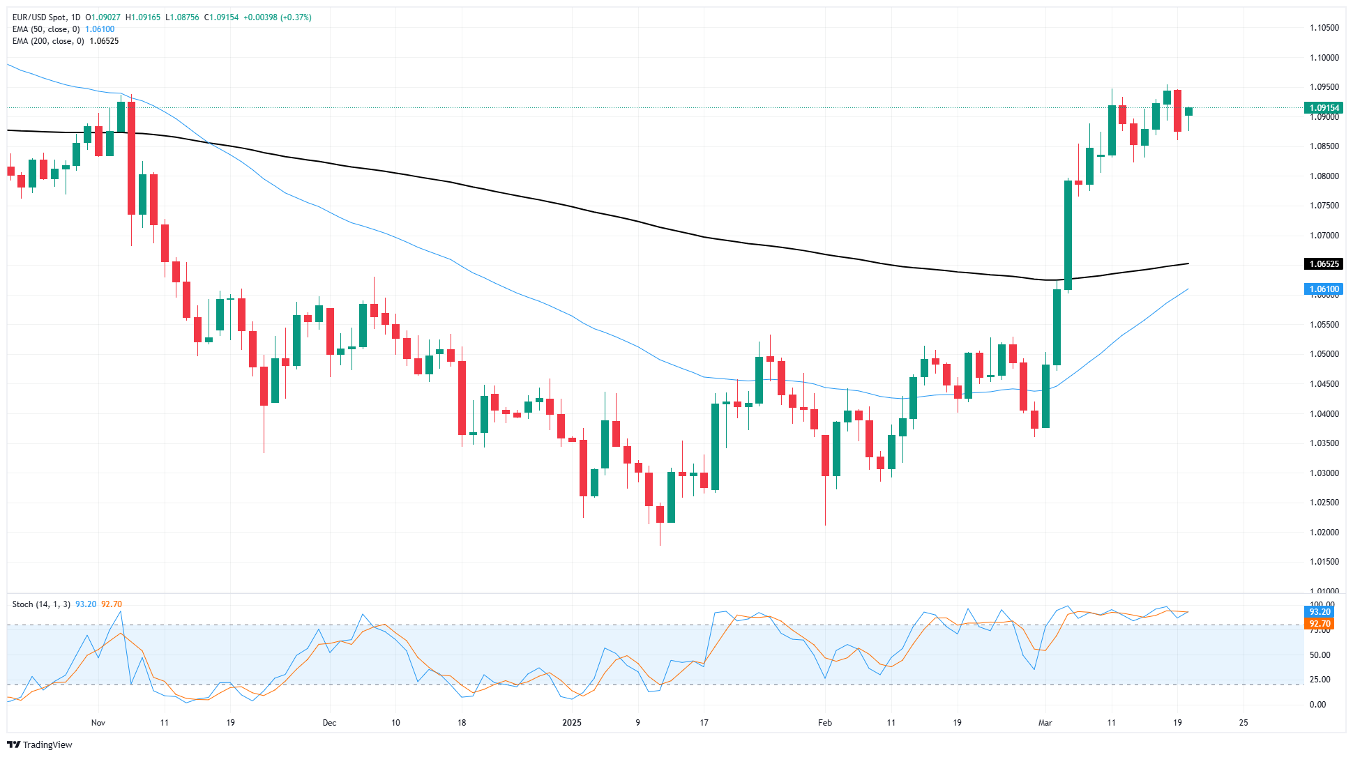 周三,欧元/美元维持在1.0900上方,受到美元流动性普遍放松的支撑,此前美联储(美联储)迎合市场预期,维持利率不变。