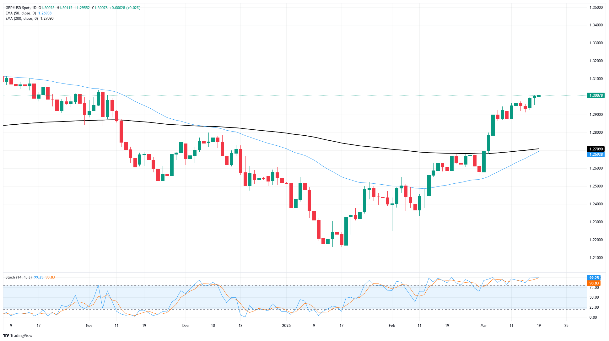 周三,英镑/美元维持在接近 1.3000 的近期高位,市场情绪在美联储(Fed)坚持其在 2025 年实施更多降息计划的情况下得到提振,尽管是在年内稍晚时。