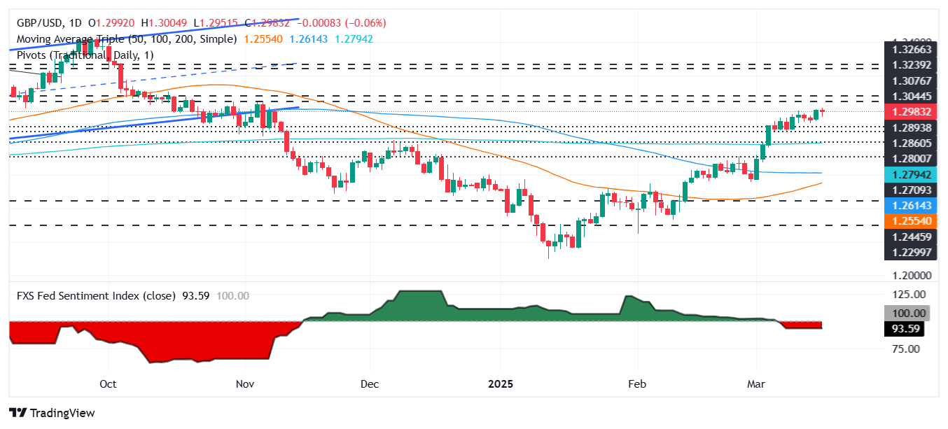 英镑/美元在美联储和英国央行不确定性中回落至1.3000以下,此前曾触及4个月高位
