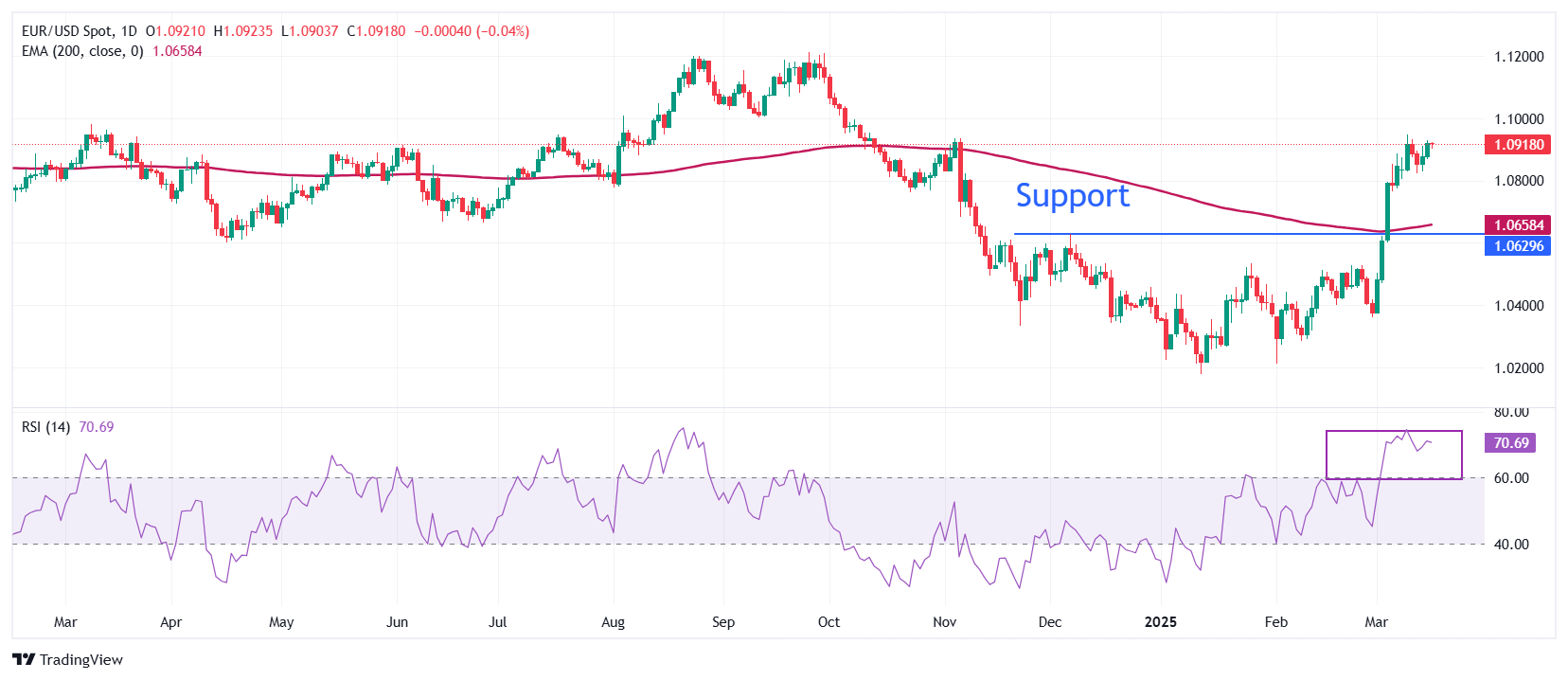 欧元/美元在周二北美时段创下接近 1.0955 的五个月新高后,放弃了盘中涨幅。