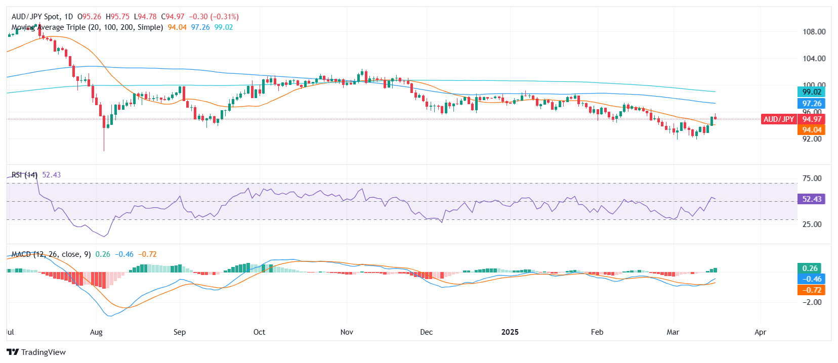 AUD/JPY价格分析:回撤至95.00但保持关键支撑