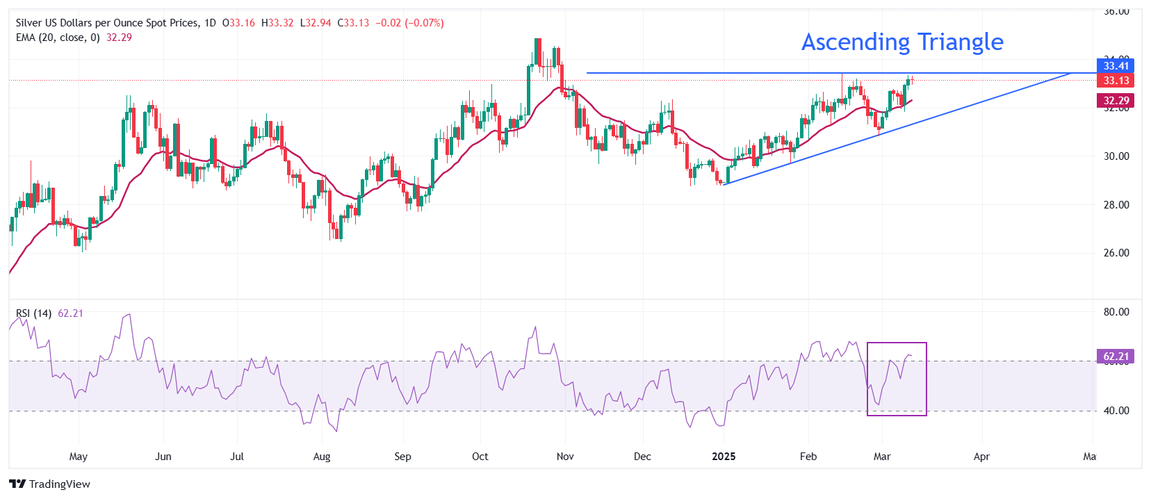 白银价格预测:由于美国PPI和CPI疲软以及特朗普关税担忧,白银/美元在33.40美元上方看到上涨潜力