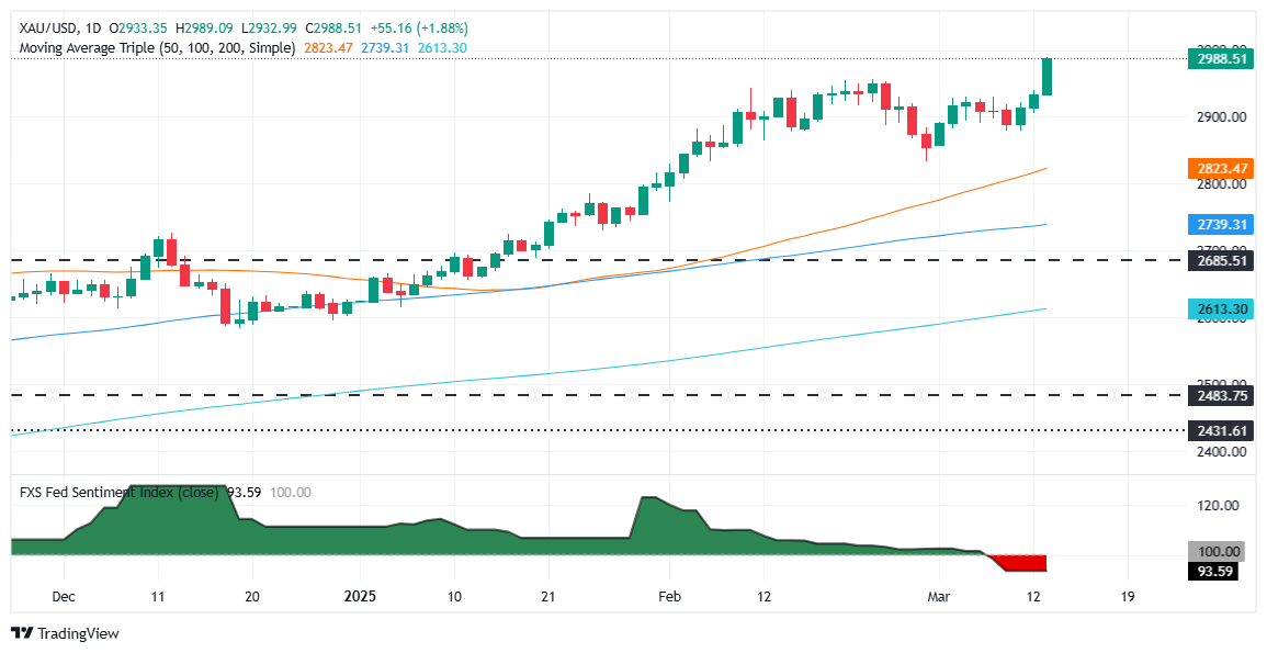 金价在贸易紧张局势冲击市场之际,触及近3000美元的历史高位