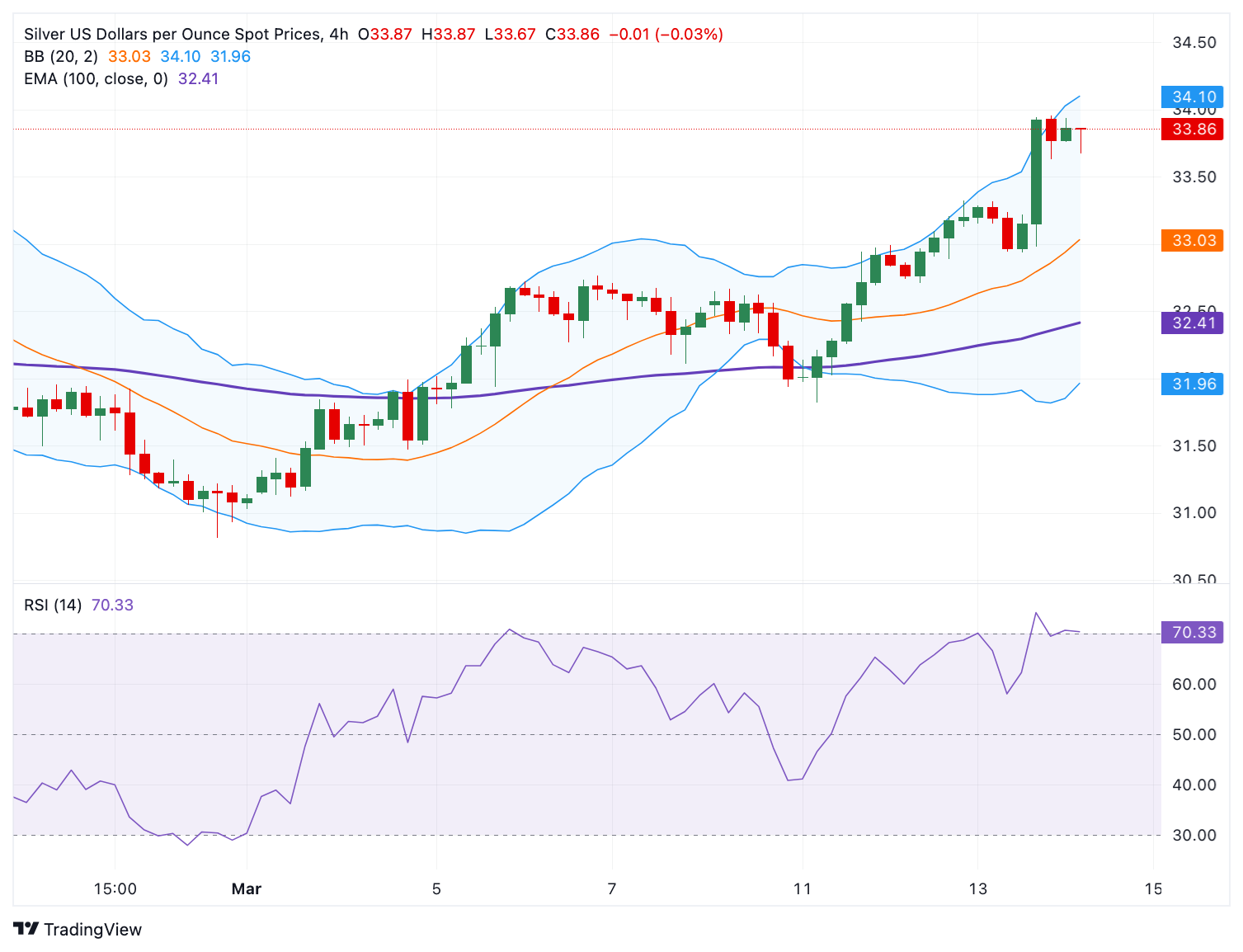 周五亚洲时段早盘,银价(XAG/USD)失去动能,接近33.80美元。