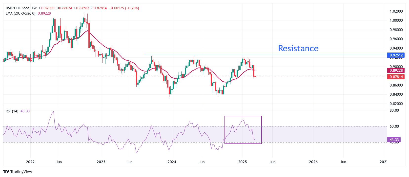 美元/瑞郎货币对在周初创下了0.8760附近的三个月新低