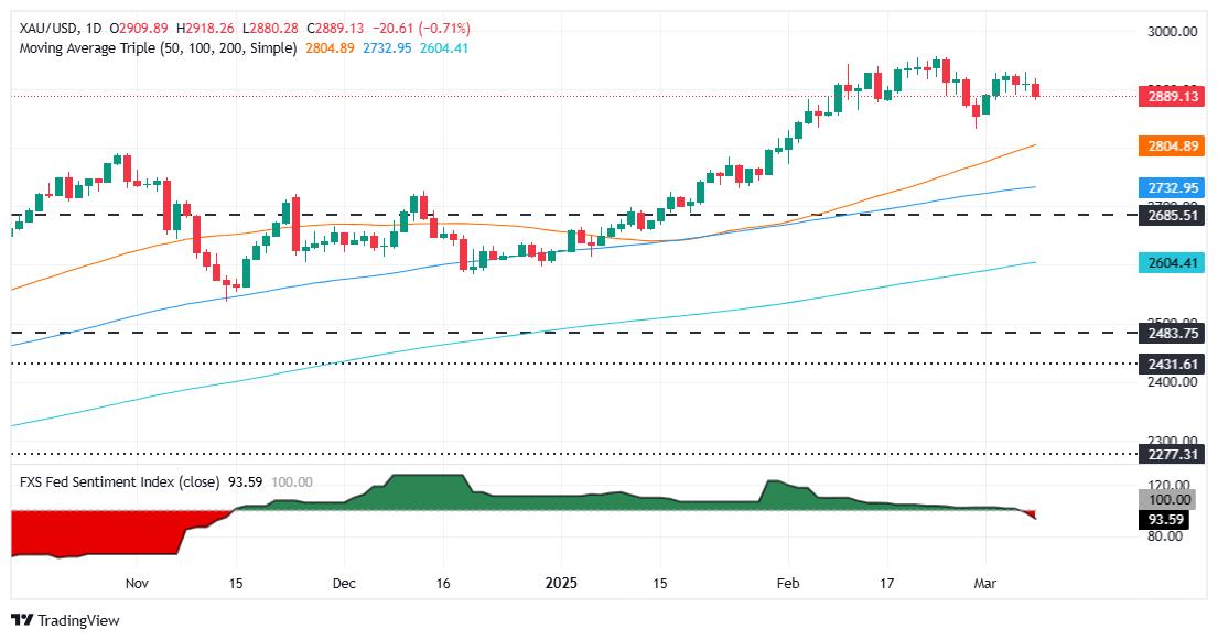 黄金(XAU)价格在本周初回落,下降0.70%,跌破2900美元大关,因为投资者对美国(US)经济衰退的担忧加剧,原因是美国总统唐纳德·特朗普实施的有争议的贸易政策。