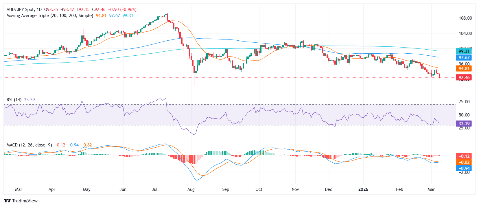 澳元/日元价格分析:空头掌控局面,货币对难以维持在93.00上方