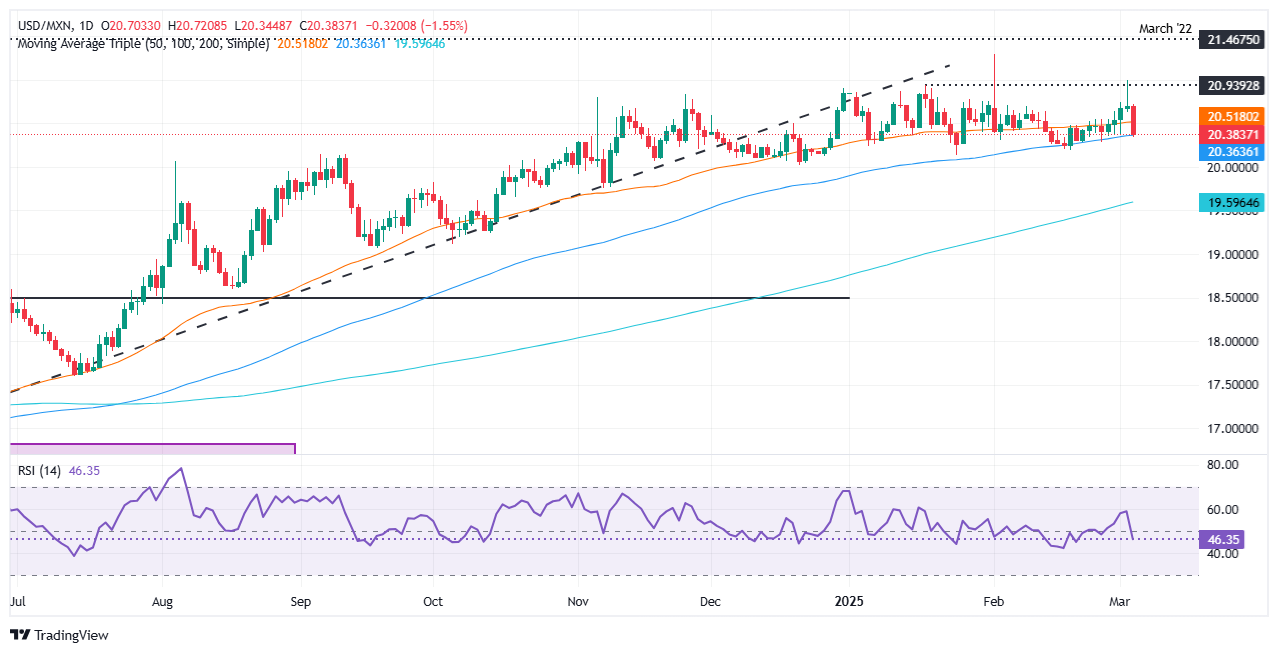 墨西哥比索(MXN)在周三对美元(USD)恢复了一些失地,原因是美国商务部长霍华德·卢特尼克的消息称,自3月4日以来美国施加的关税可能会被撤回或至少进行调整