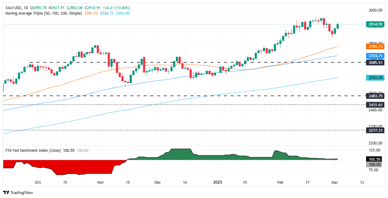 在美国(US)、加拿大、墨西哥和中国之间的贸易战升级之际,新的关税将于周二生效,黄金价格在疲软的美元(USD)中上涨