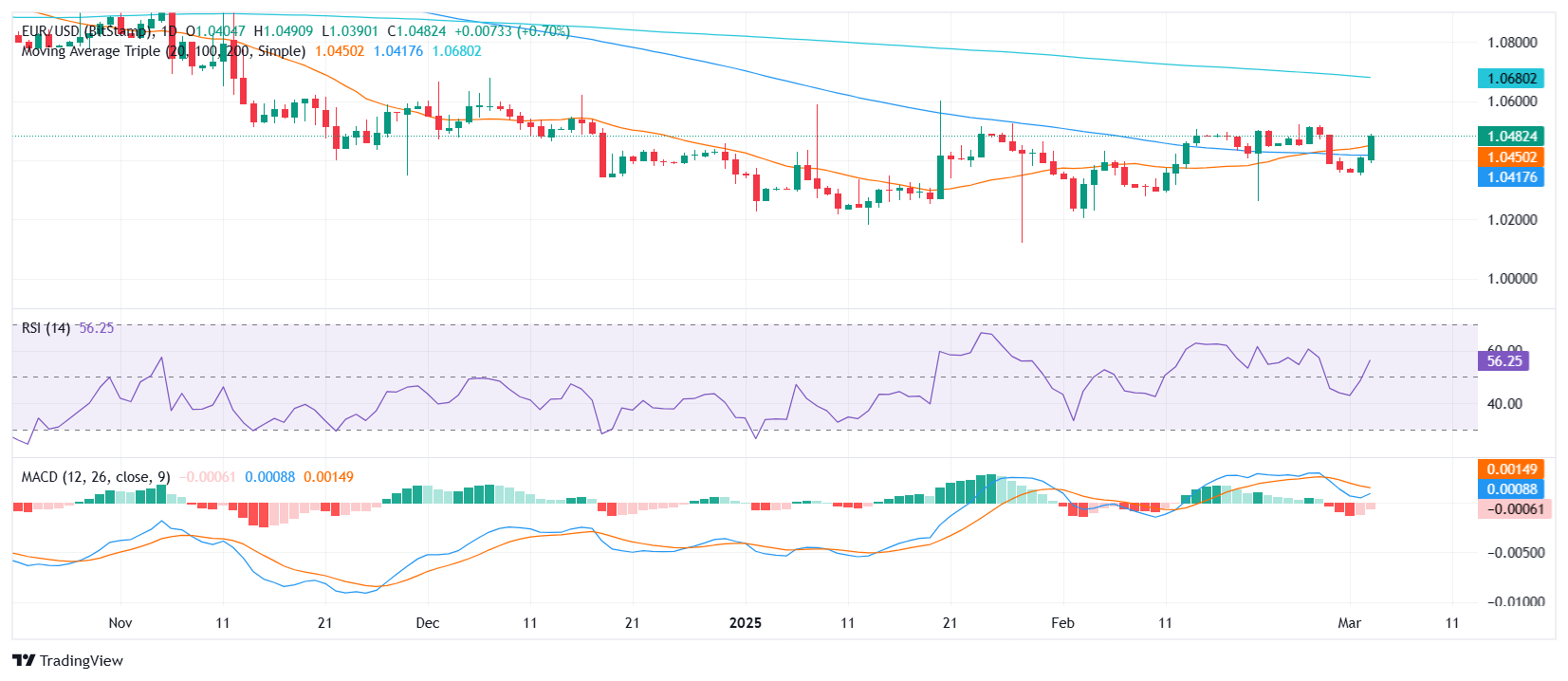 欧元/美元在本周开局时强劲反弹,突破 1.0450,攀升至关键技术水平之上,暗示买方正在重新获得动能