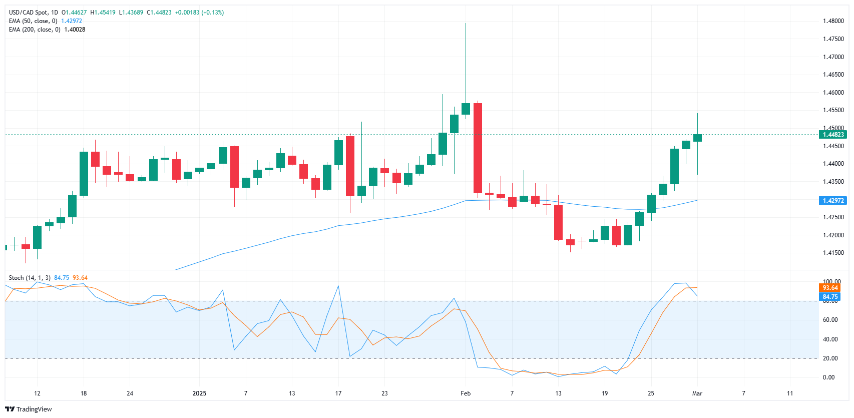 美元/加元在特朗普确认关税后延续涨势,突破1.4450