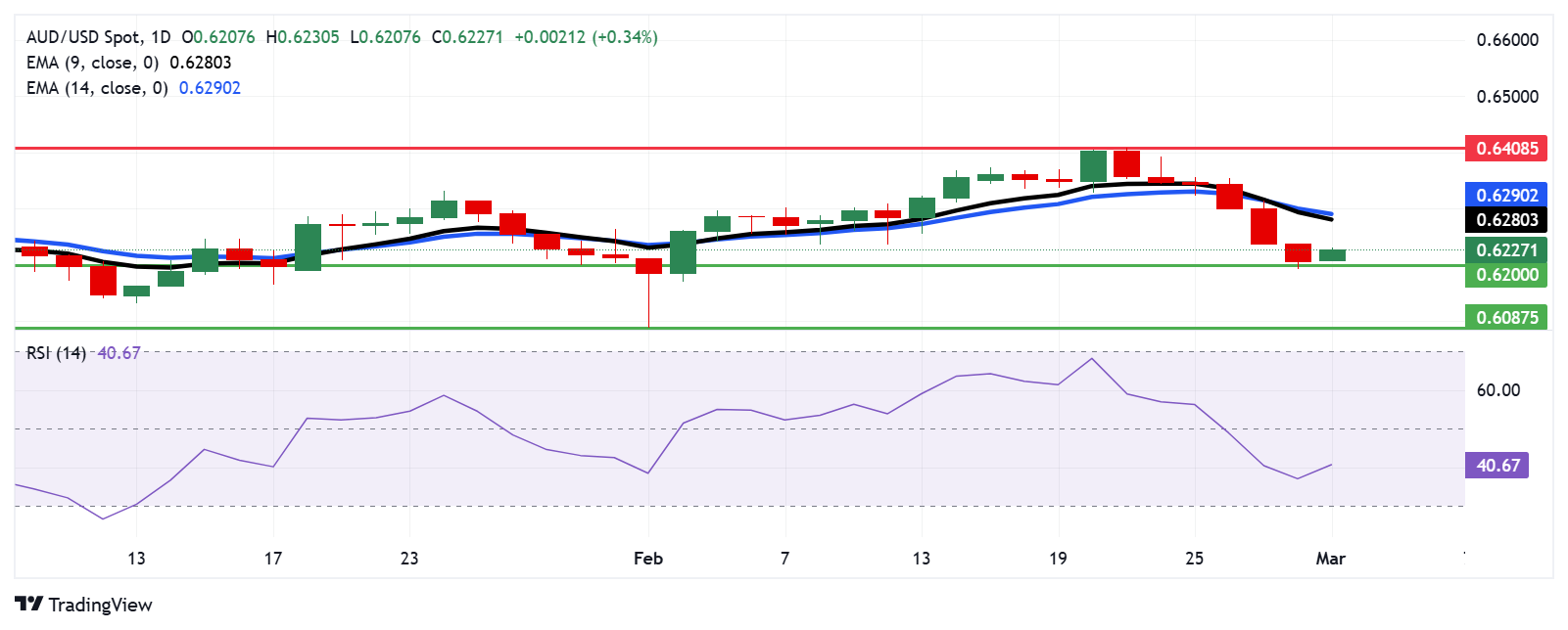 澳大利亚元(AUD)在周一结束了连续六天的下跌,受到周五发布的1月份个人消费支出(PCE)通胀数据影响,美元(USD)走弱。