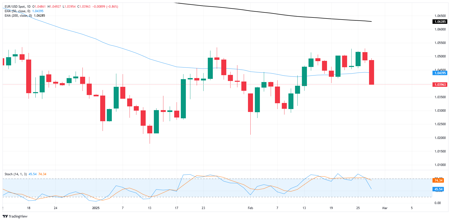 欧元/美元在周四下跌,跌幅接近0.9%,首次回落至1.0400以下,距离两周前的高点。