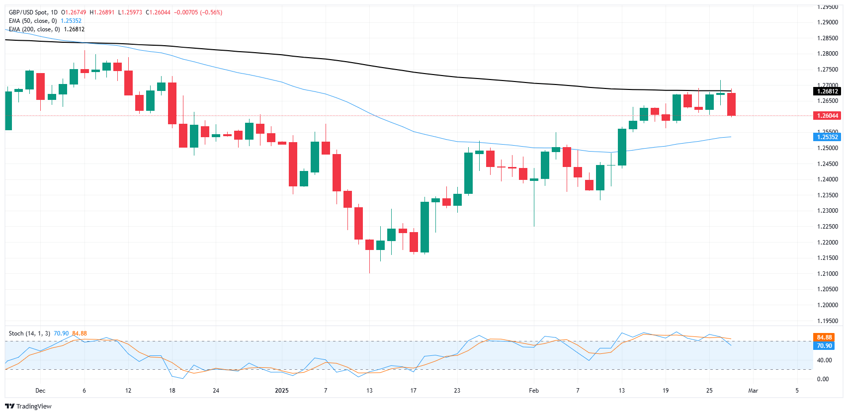英镑/美元在周四转向下跌,跌幅近六十分之一,导致买盘回落至1.2600关口。