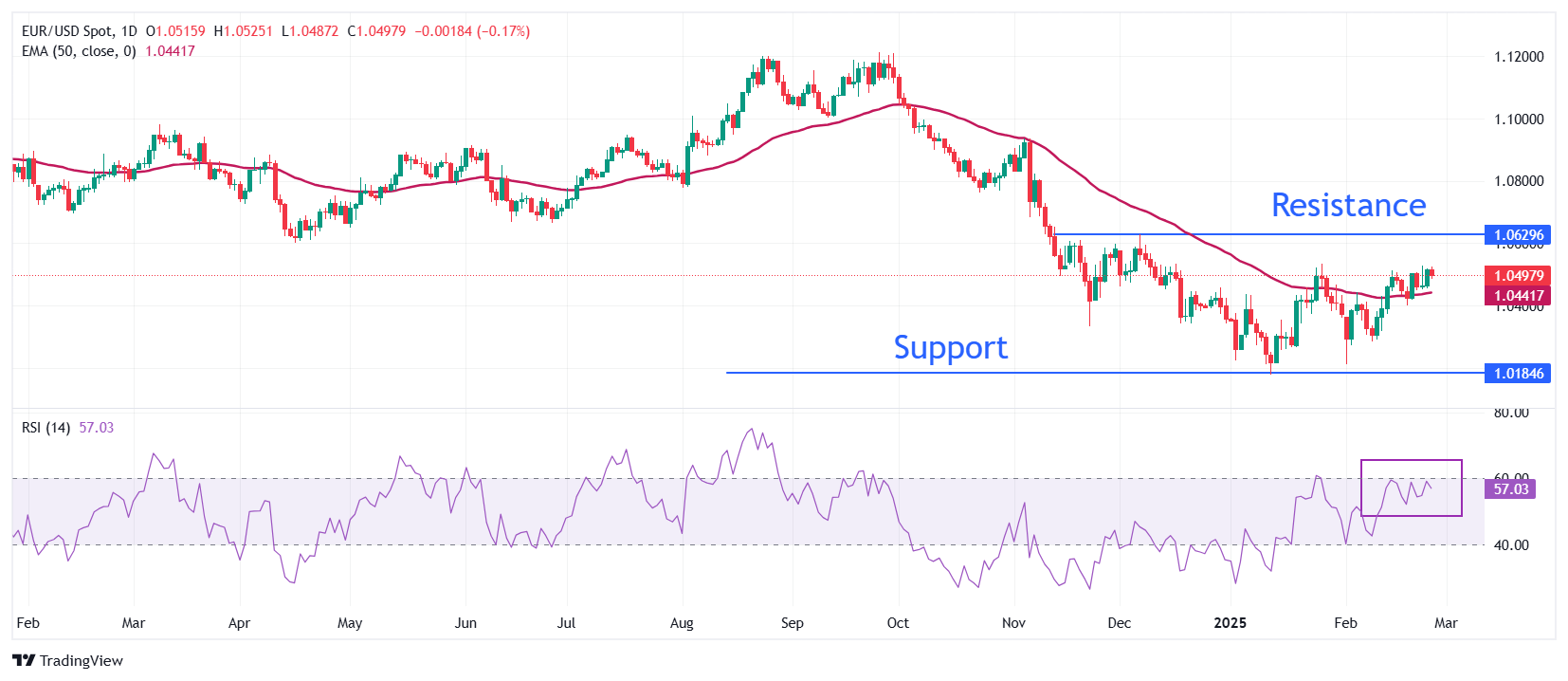 周三北美时段,欧元/美元在1.0500心理关口上方继续面临卖压
