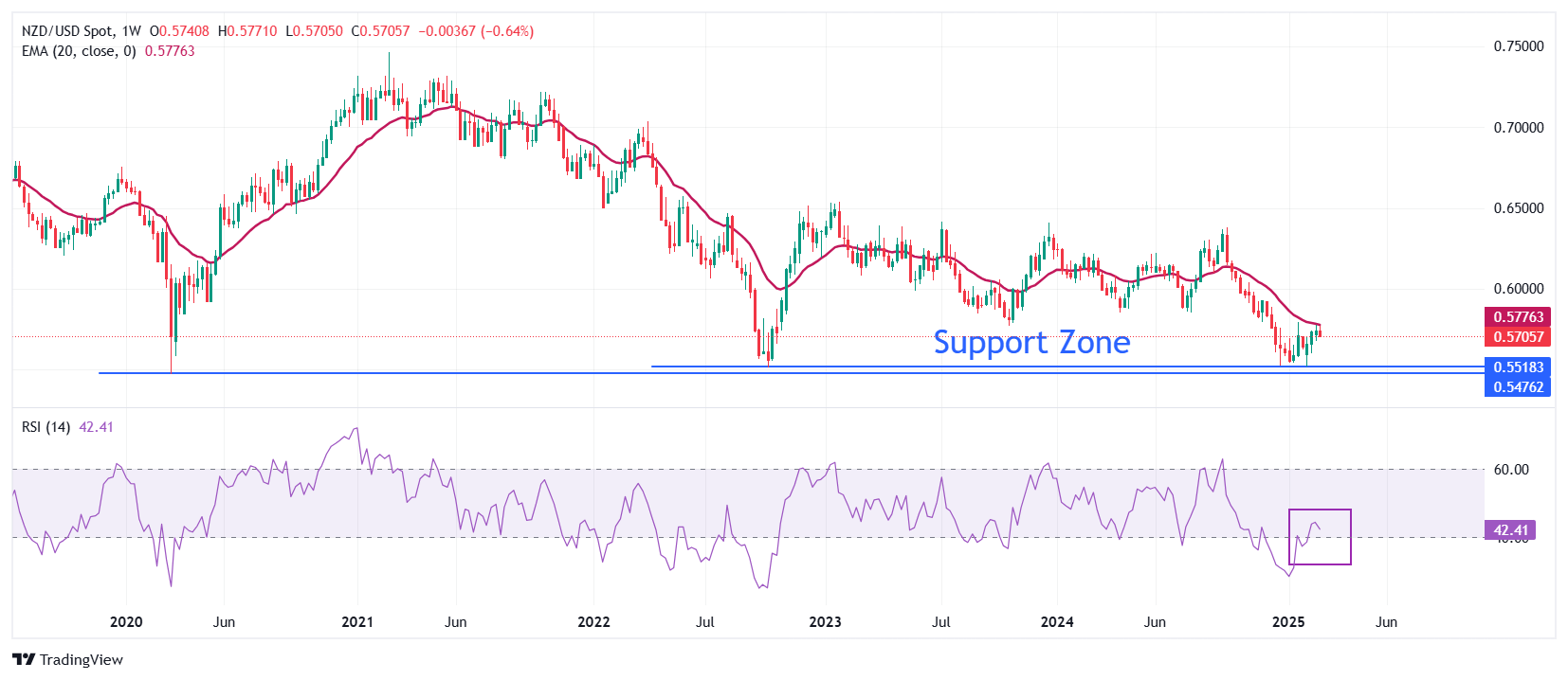 周三,纽元/美元在欧洲交易时段延续了第四个交易日的下跌趋势,滑落至关键水平0.5700附近