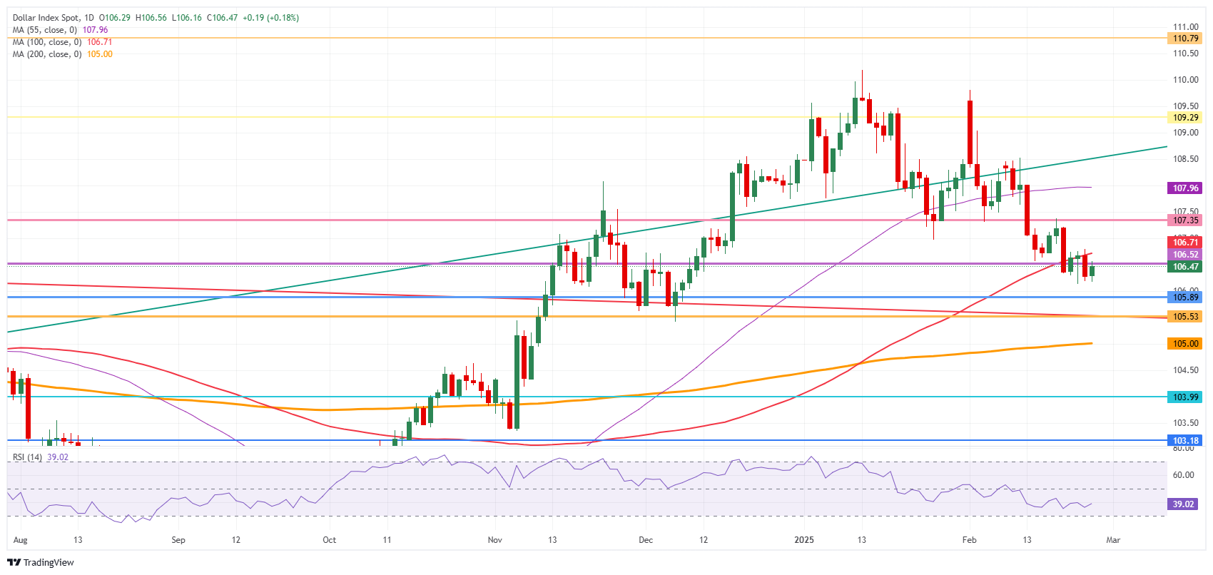 美元指数(DXY)跟踪美元(USD)对六种主要货币的表现,截至周三撰写时仍徘徊在106.50附近,预计将在2月份结束时略高于2025年的最低点。DXY指数
