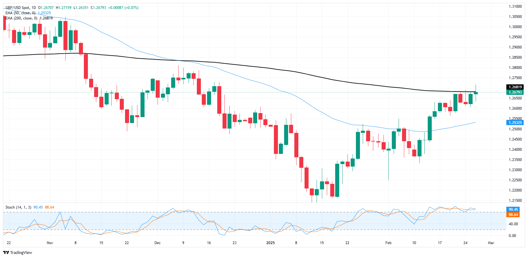 英镑/美元周三短暂测试了新的 10 周高点,首次突破 1.2700,自 12 月中旬以来首次。