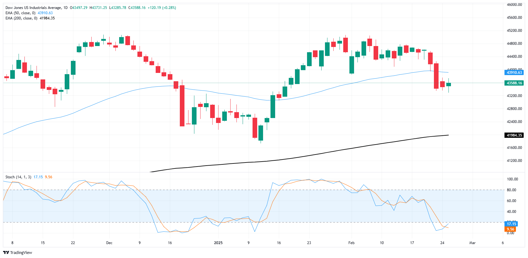 道琼斯工业平均指数(DJIA)周二小幅下跌,跌至43,285的多周新低