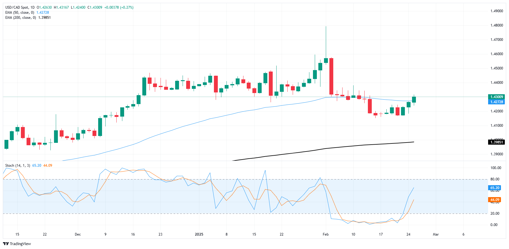 周二,加拿大元(CAD)兑美元(USD)下跌了四分之一个百分点,支撑了美元/加元(USD/CAD),使该货币对维持在1.4300关口附近。