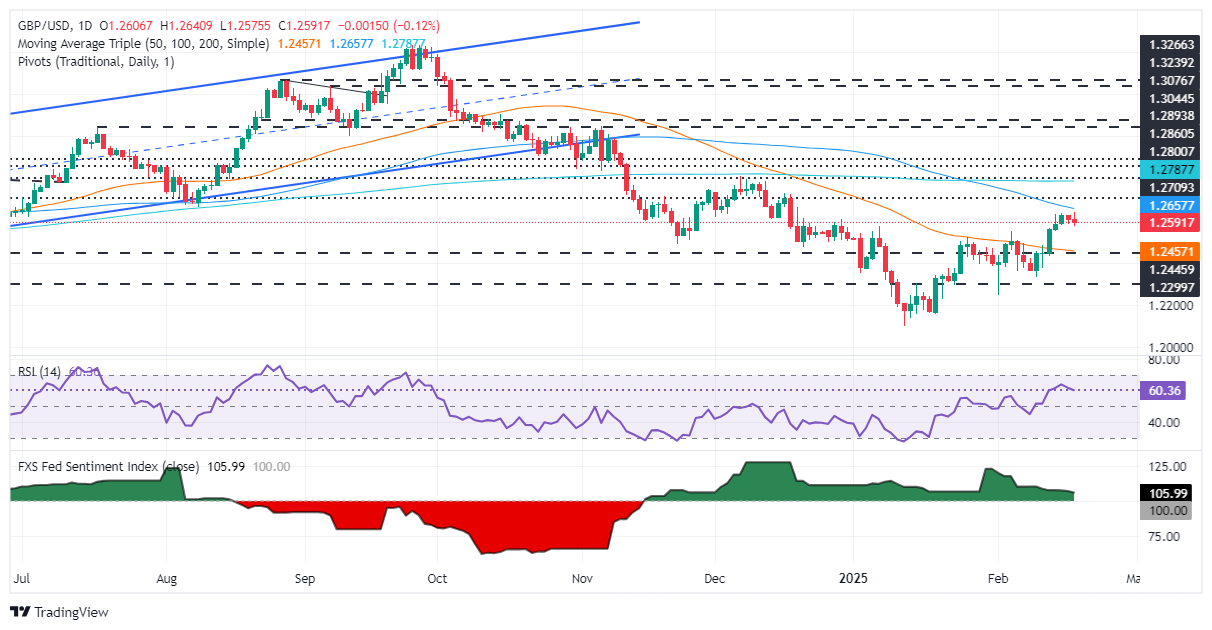 在北美时段,英镑/美元回落至1.2600以下,因为美国的住房数据喜忧参半,而英国的通胀率达到了自2024年3月以来的最高水平