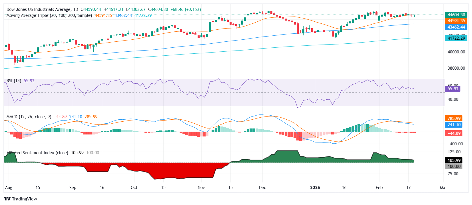 道琼斯工业平均指数(DJIA)衡量30只大型美国股票的表现,目前承压,交易价格约为44,380。