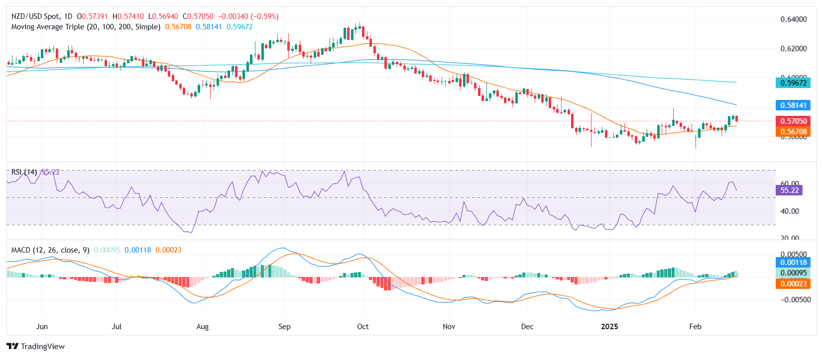 新西兰元在周二面临抛售压力,兑美元下跌0.58%,至0.5700,此前上周的反弹使该货币对攀升至自1月底以来的最高水平,超过0.5730