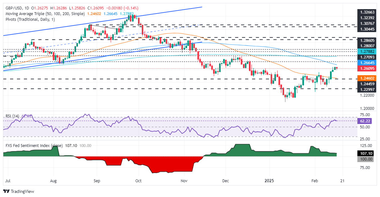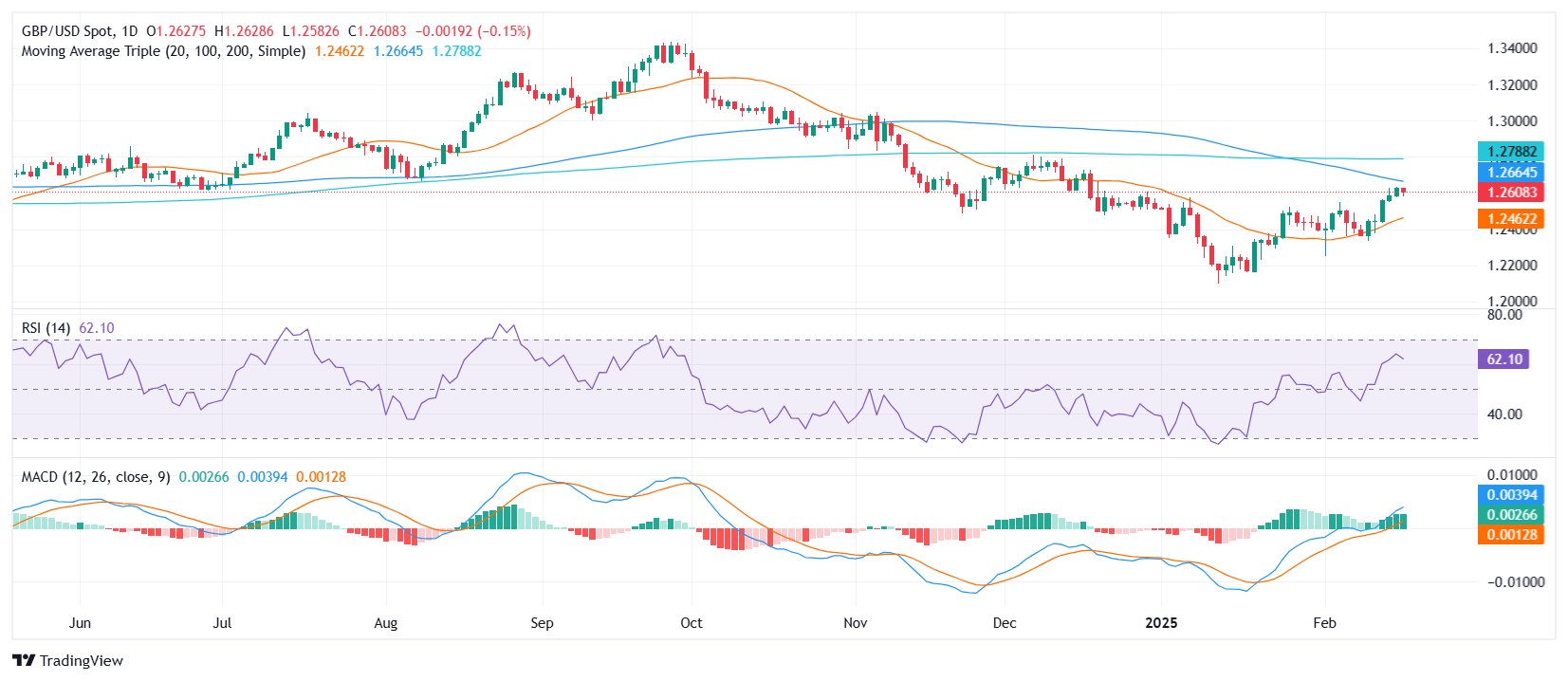 英镑/美元周二小幅回落,跌幅为0.16%,至1.2605,此前的强劲反弹将其推升至自1月中旬以来的最高水平。