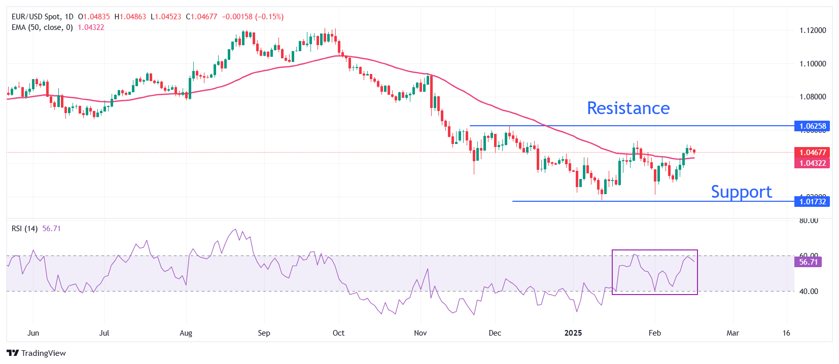 欧元/美元在周二北美交易时段下跌至接近 1.0450,此前在过去两个交易日未能维持在 1.0500 的心理阻力上方。