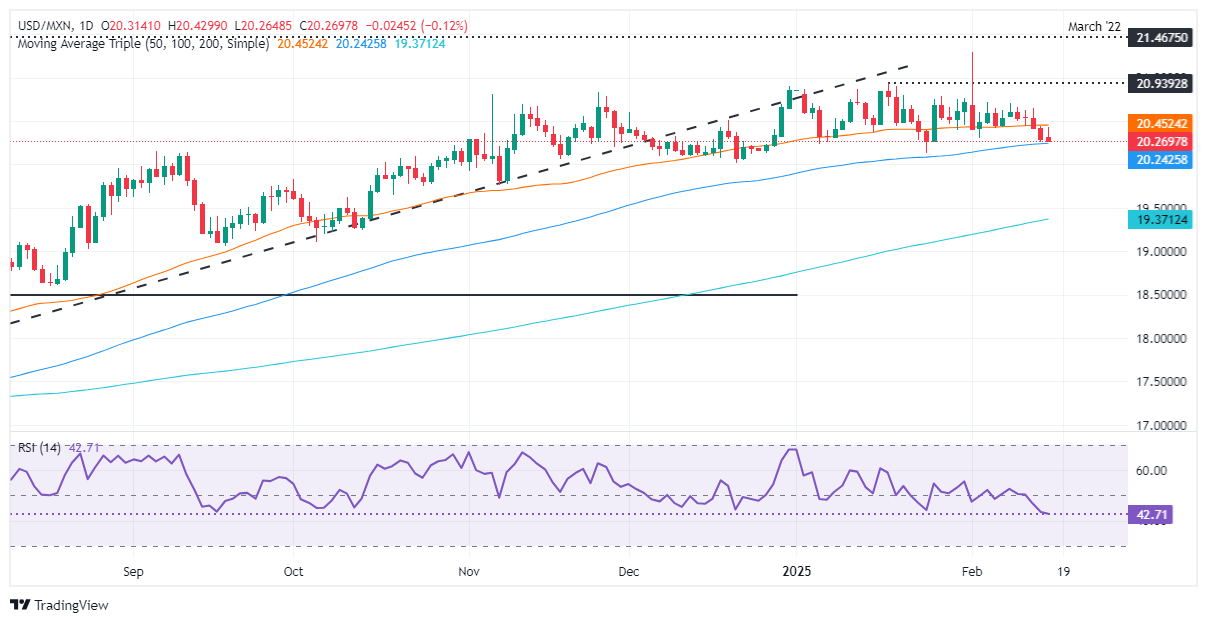 墨西哥比索(MXN)相对于美元(USD)延续涨势,突破关键支撑位20.42的50天简单移动平均线(SMA),因美元/墨西哥比索在较低汇率水平上获得接受。