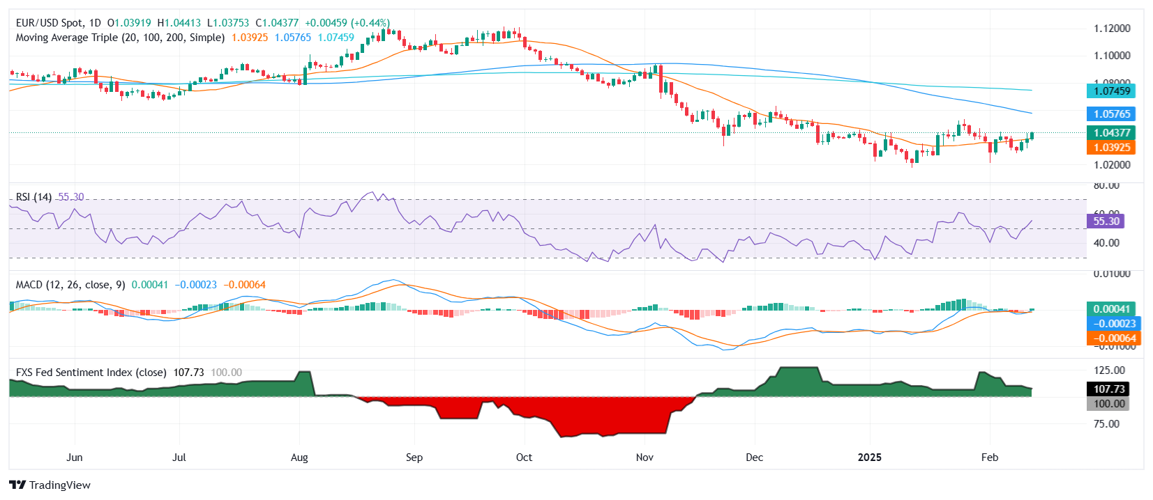 欧元/美元周四继续反弹,小幅上涨至1.0385,并巩固其突破20日简单移动均线(SMA)的走势