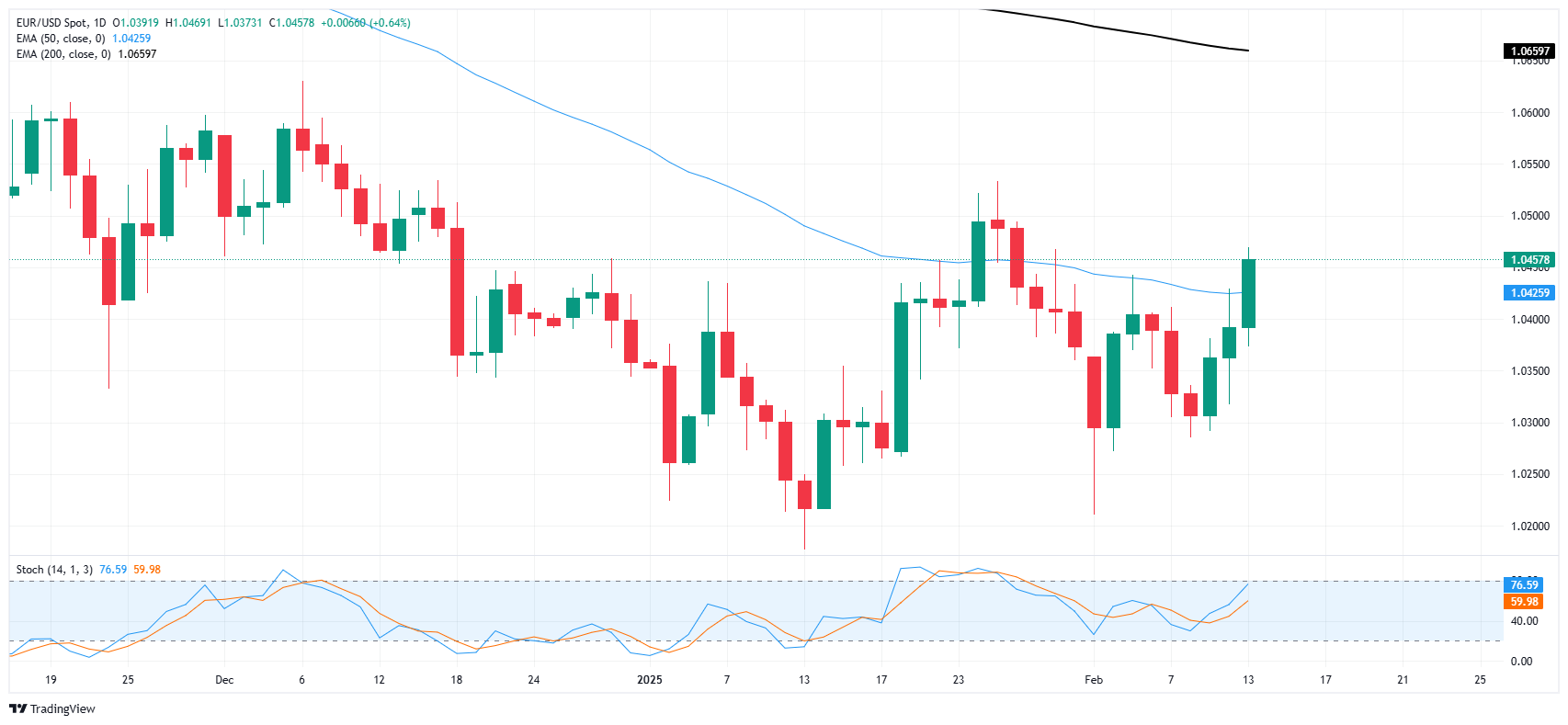 欧元/美元周四获得买盘,上涨0.7%,重新突破1.0400关口