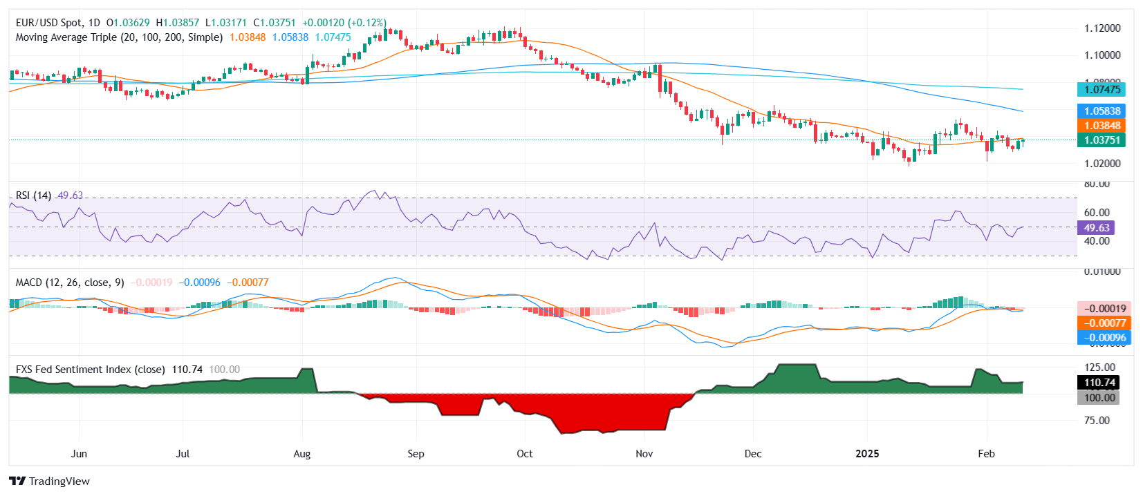 欧元/美元对周三小幅上涨至 1.0375,买家延续了近期的反弹努力